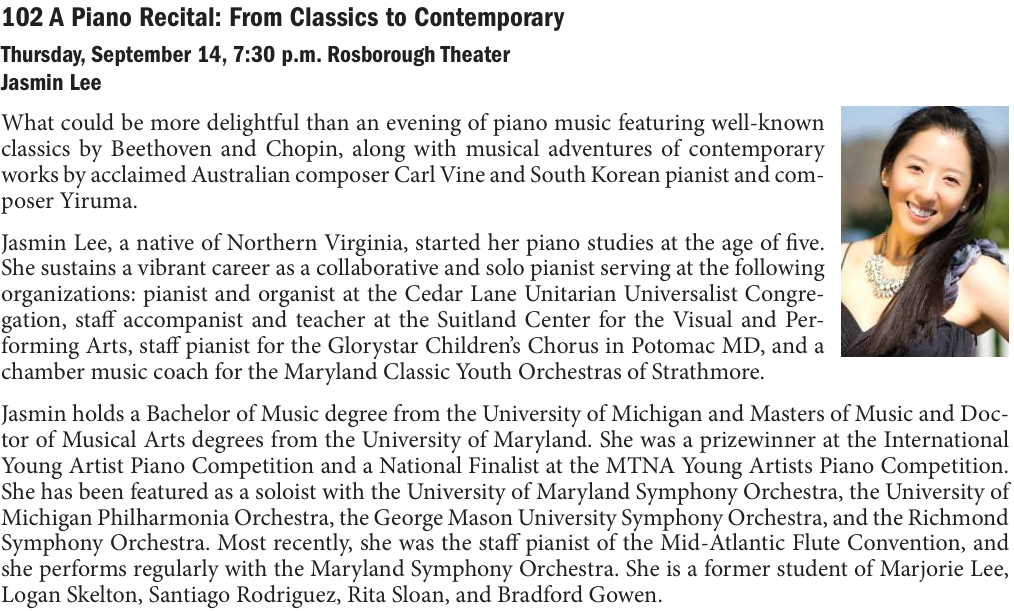 #102, Mon, Sep, 11, Video A Piano Recital, from Classics to Contemporary,