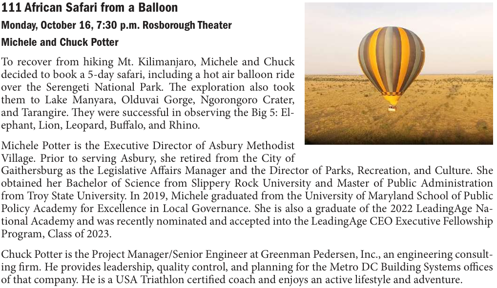 #111, Mon, Oct, 16, Video African Safari from a Balloon,