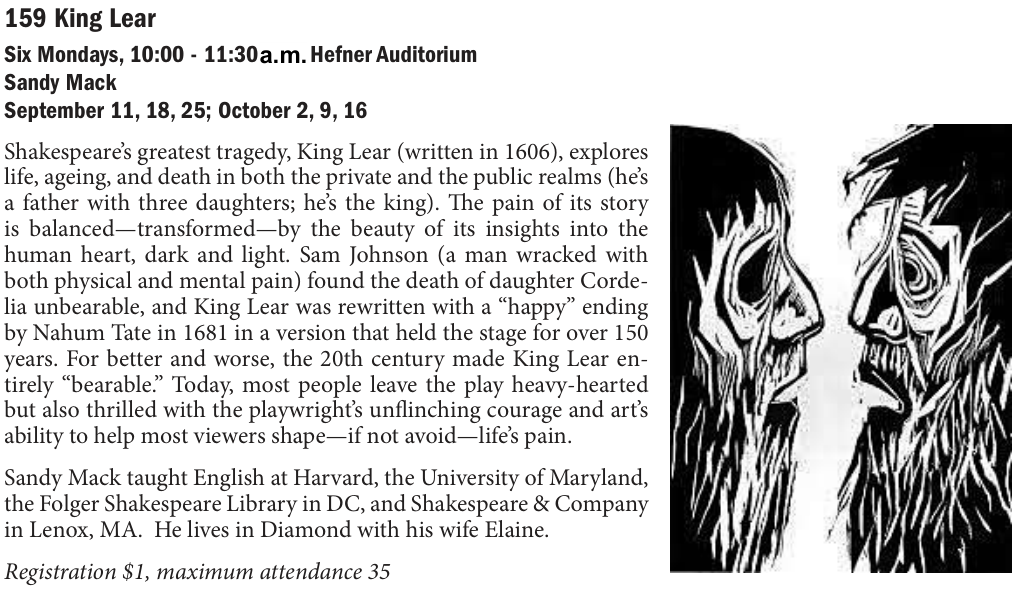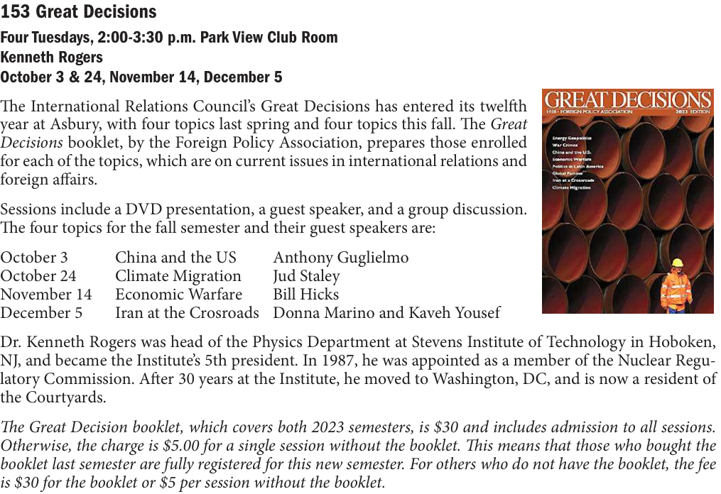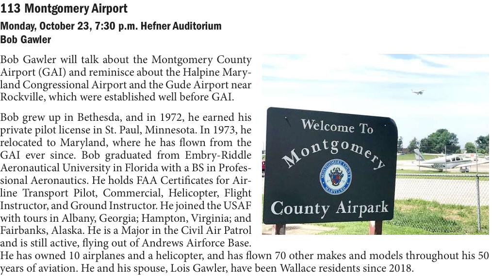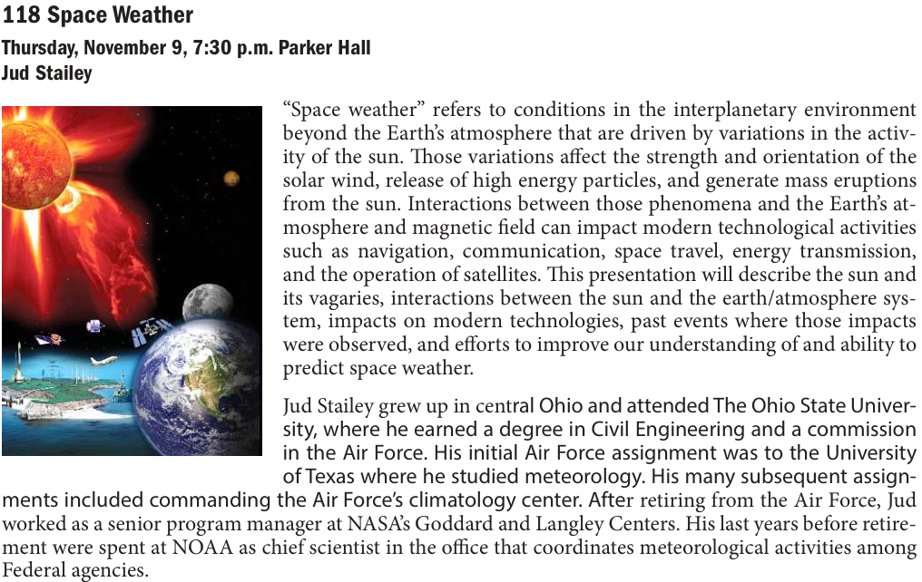 _____ Six Mondays, 10:00 - 11:30 am, September 11, 18, 25; October 2, 9, 16, Hefner Auditorium