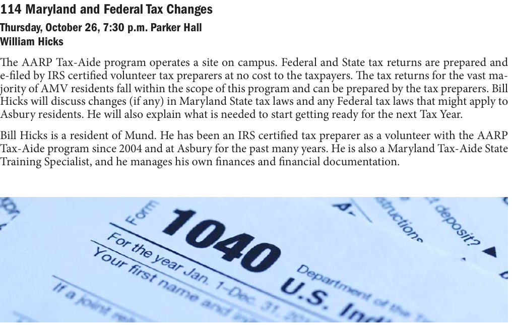 #114, Thu, Oct, 26, Video Maryland and Federal Tax Changes,