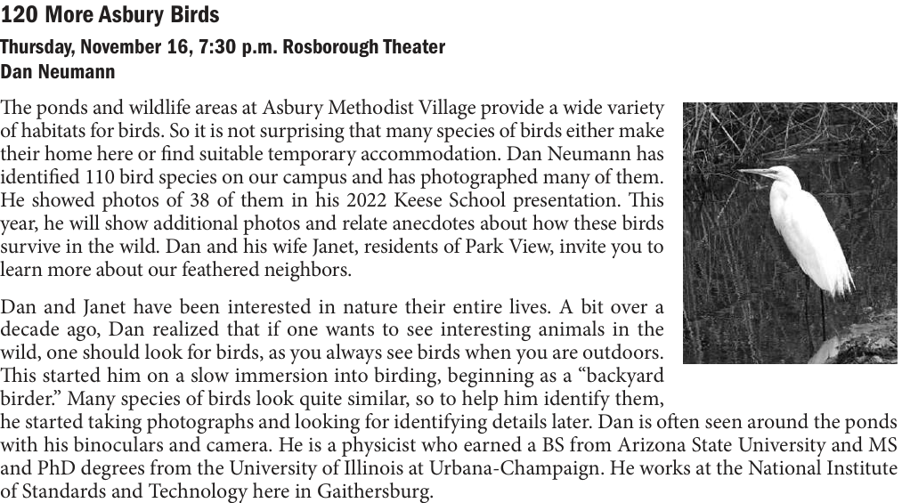 #120, Thu, Nov, 16, Video More Asbury Birds,
