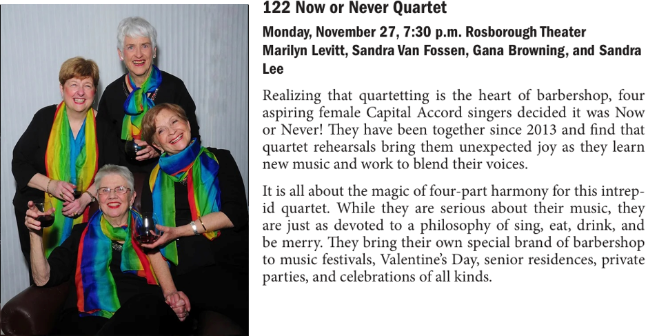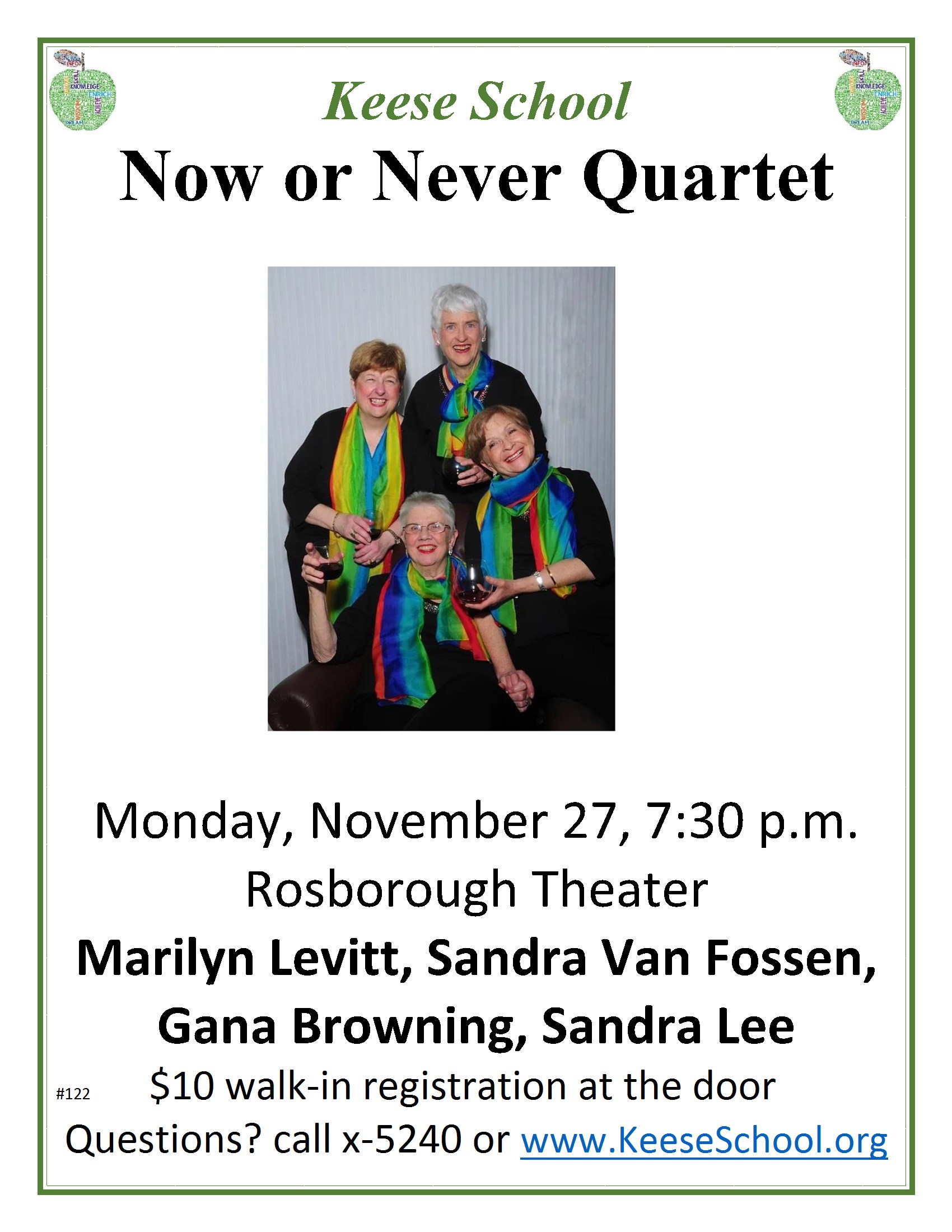 #122, Mon, Nov, 27, Video Now or Never Quartet,
