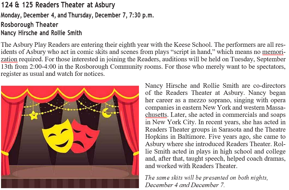 #125, Thu, Dec, 4 and 7, Video Readers Theater at Asbury,