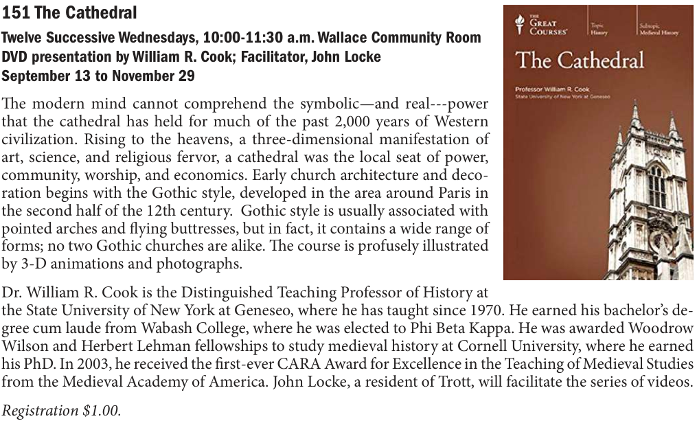 _____ Twelve Successive Wednesdays, 10:00-11:30 a.m., September 13 to November 29, Wallace Community Room