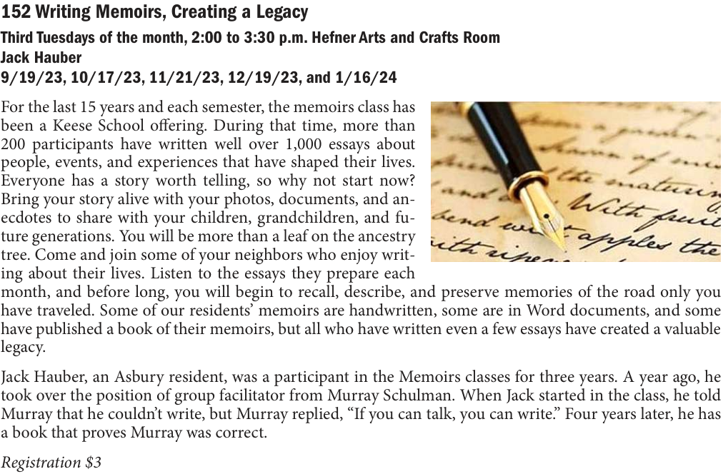 _____ Third Tuesdays of the month 2:00-3:30 p.m., 9/19/23, 10/17/23, 11/21/23, 12/19/23, and 1/16/24, Hefner Arts and Crafts Room
