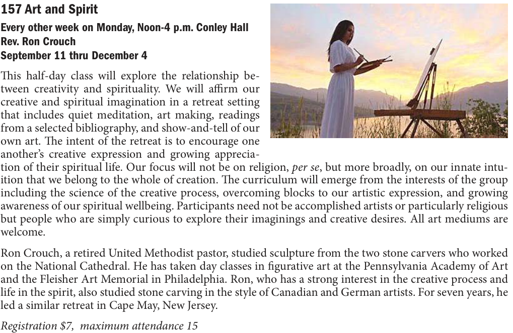 _____ Five Tuesdays 1:00 to 3:00 pm, Starts October 17, Trott Conley Hall