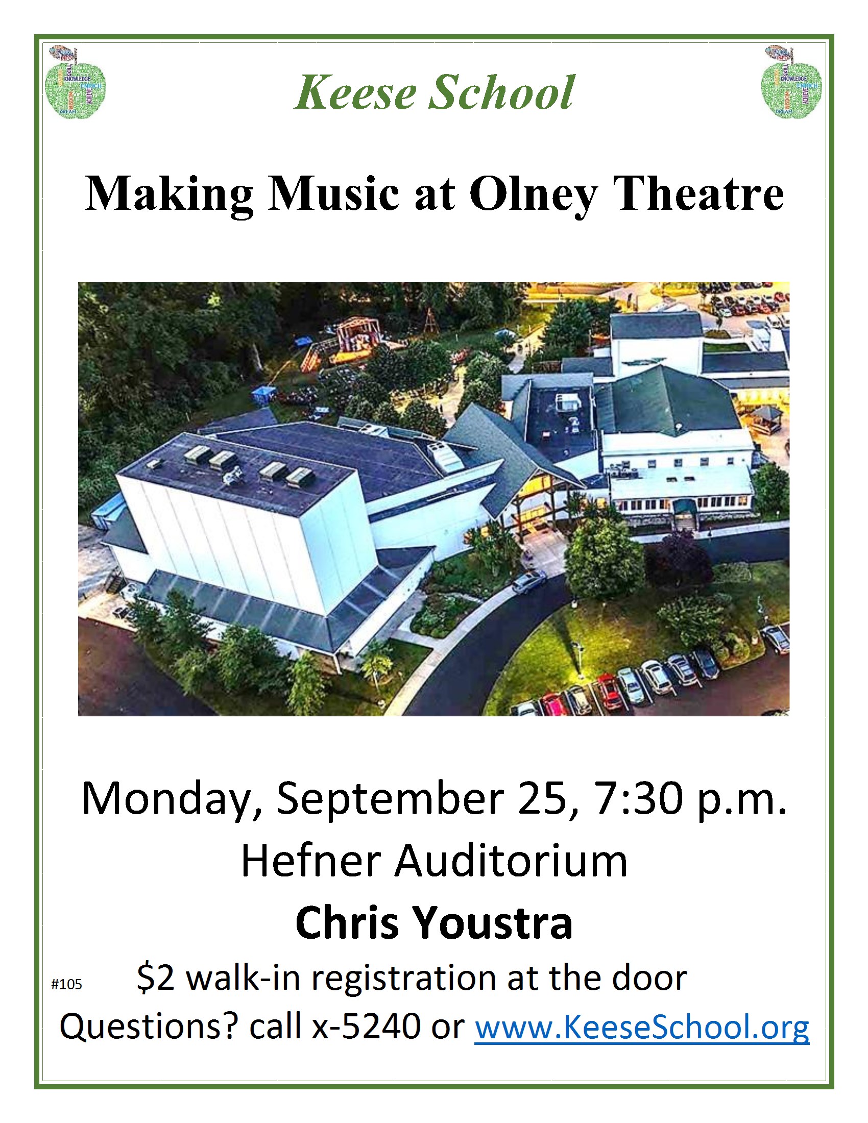 #105, Mon, Sep, 25, Video Making Music at Olney Theater,