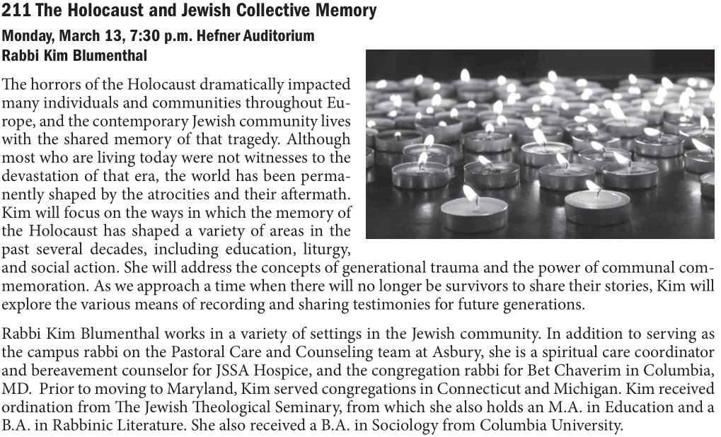 #211, Mon, Mar, 13, The Holocaust and Jewish Collective Memory, Rabbi Kim Blumenthal,