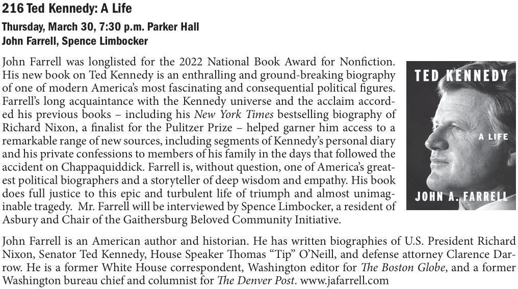 #216, Thu, Mar, 30, Ted Kennedy: A Life, John Farrell, Spence Limbocker,