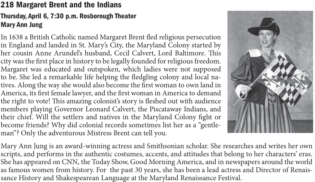 #218, Thu, Apr, 06, No Video - Margaret Brent and the Indians, Mary Ann Jung,