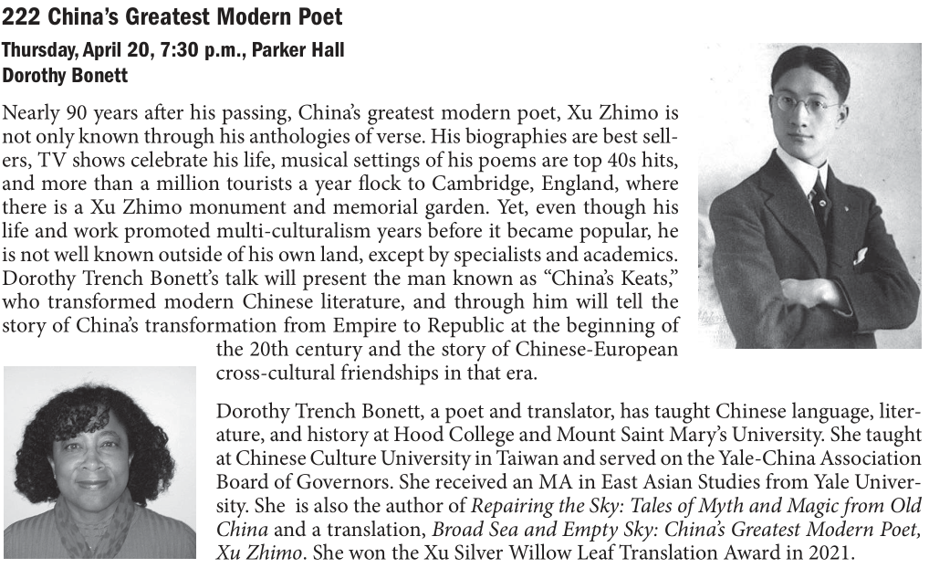 #222, Thu, Apr, 20, China's Greatest Modern Poet, Dorothy Bonett,
