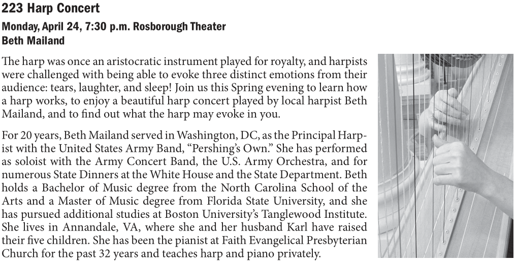 #223, Mon, Apr, 24, Harp Concert, Beth Mailand,