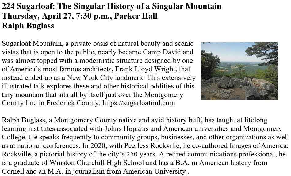 #224, Thu, Apr, 27, Sugarloaf: The Singular History of a Singular Mountain, Ralph Buglass,