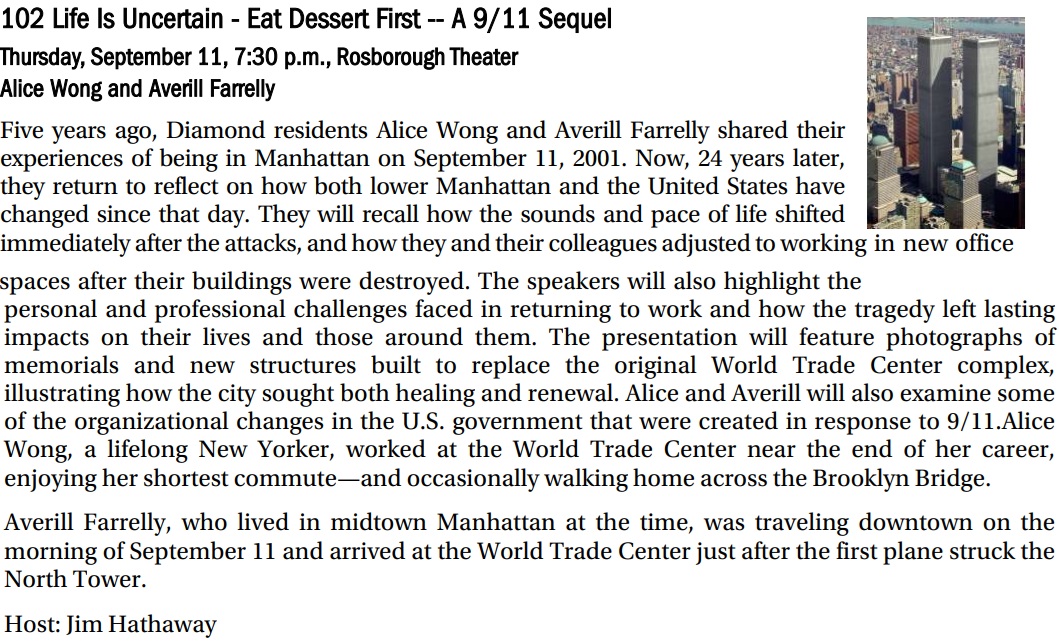 Life is Uncertain - Eat Dessert First -- A 9/11 Sequel