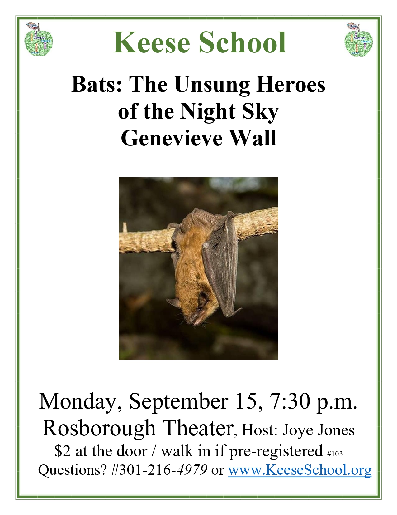 Bats: The Unsung Heroes of the Night Sky , Genevieve Wall, Rosborough Theater,