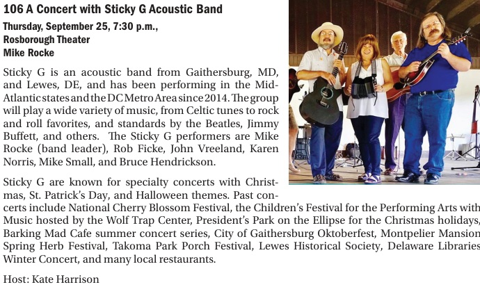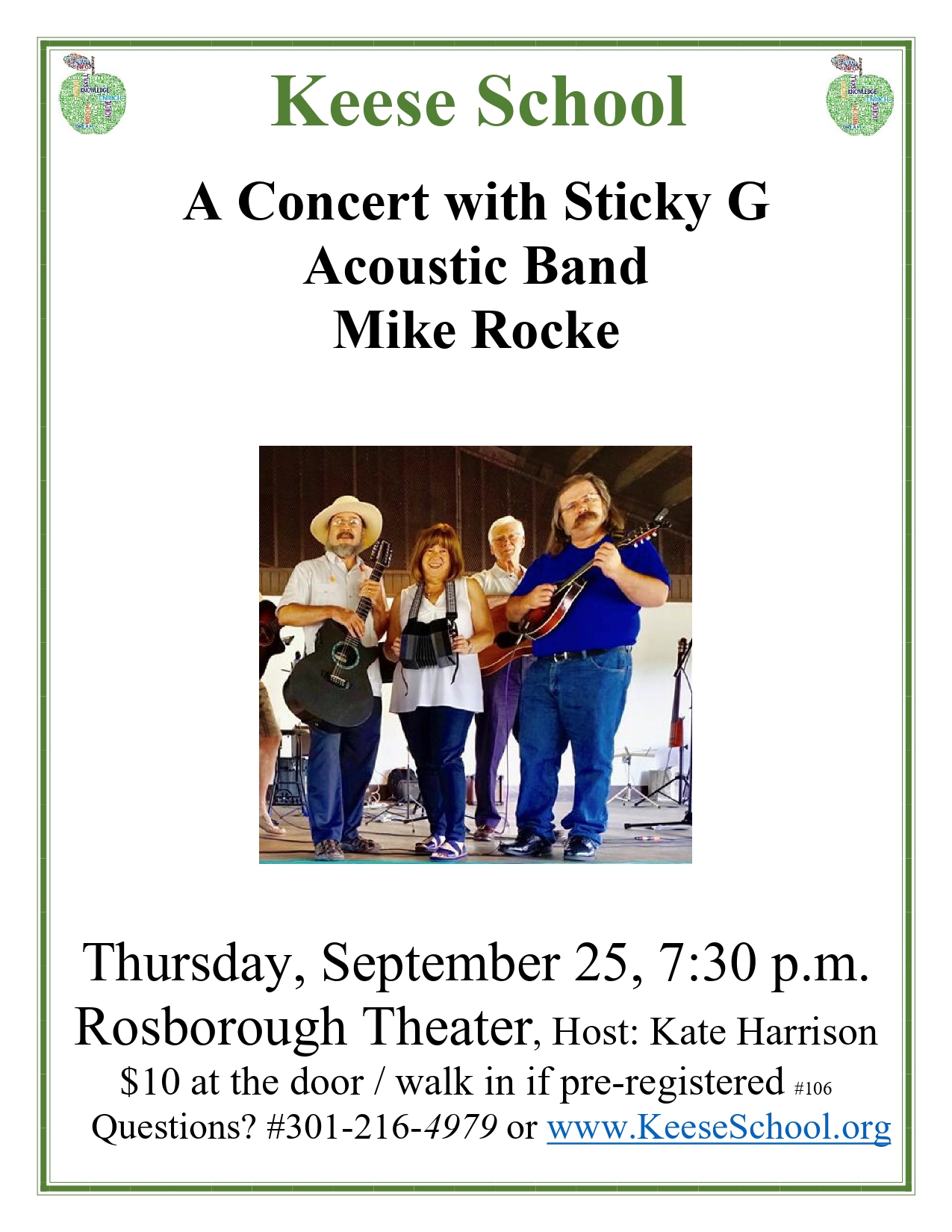 A Concert with Sticky G Acoustic Band , Mike Rocke, Rosborough Theater,