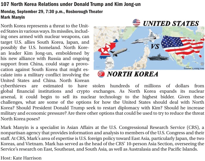 North Korea Relations under Donald Trump , Mark Manyin, Rosborough Theater,