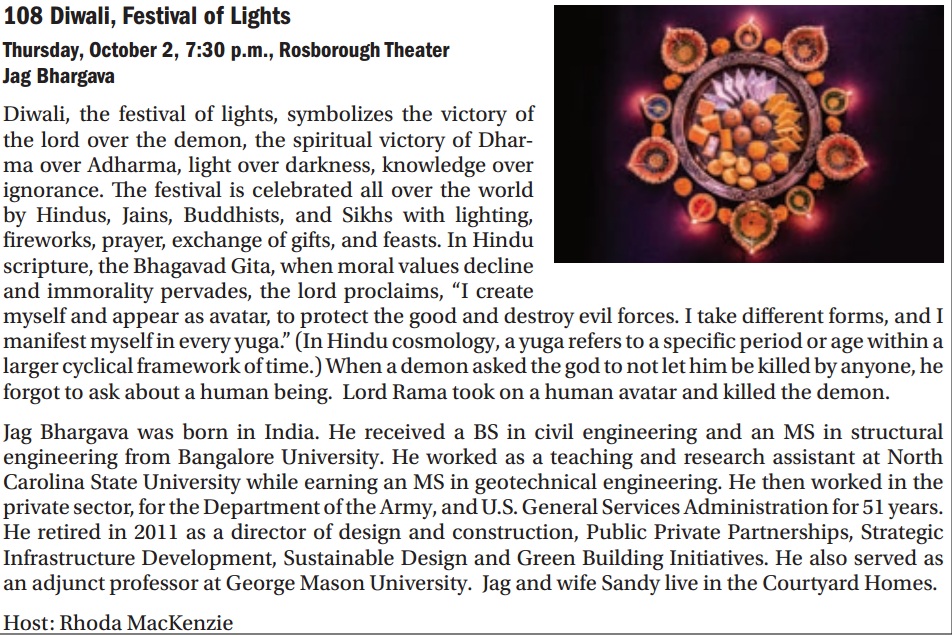 Diwali, Festival of Lights , Jag Bhargava, Rosborough Theater,