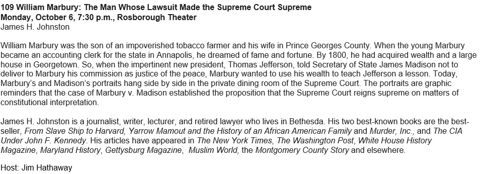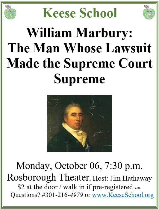 William Marbury: The Man Whose Lawsuit Made the Supreme Court Supreme , James H. Johnston, Rosborough Theater,