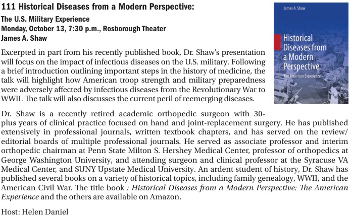 Historical Diseases, American Military Experience , James A. Shaw, Rosborough Theater,