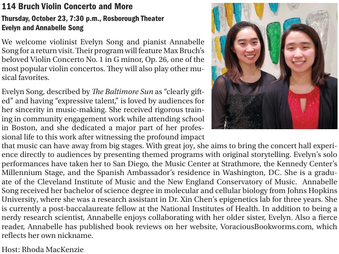 Bruch Violin Concerto and More , Evelyn and Annabelle Song, Rosborough Theater,