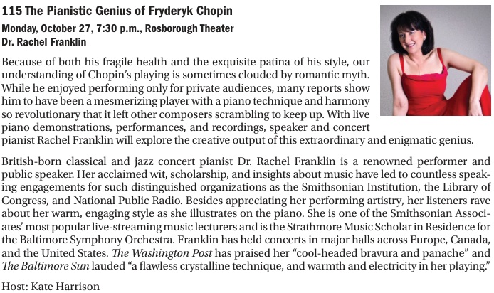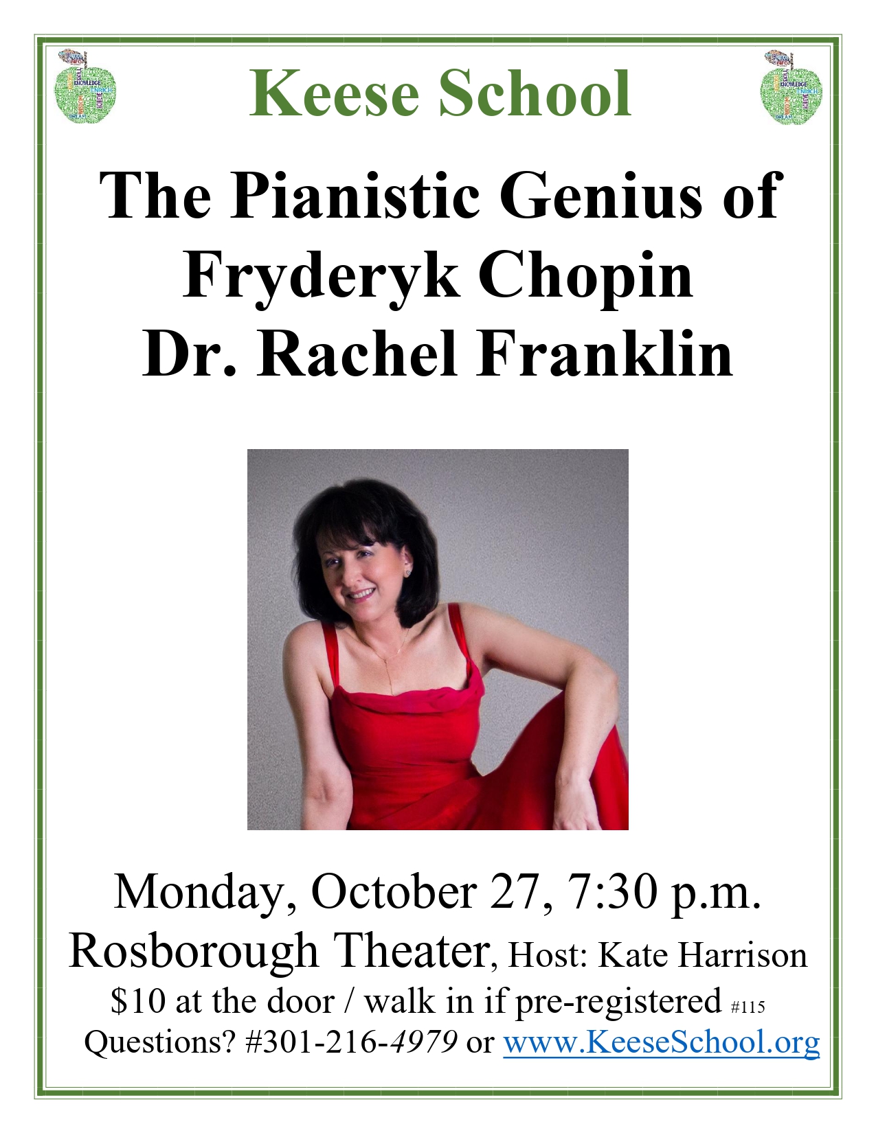 The Pianistic Genius of Fryderyk Chopin , Dr. Rachel Franklin, Rosborough Theater,