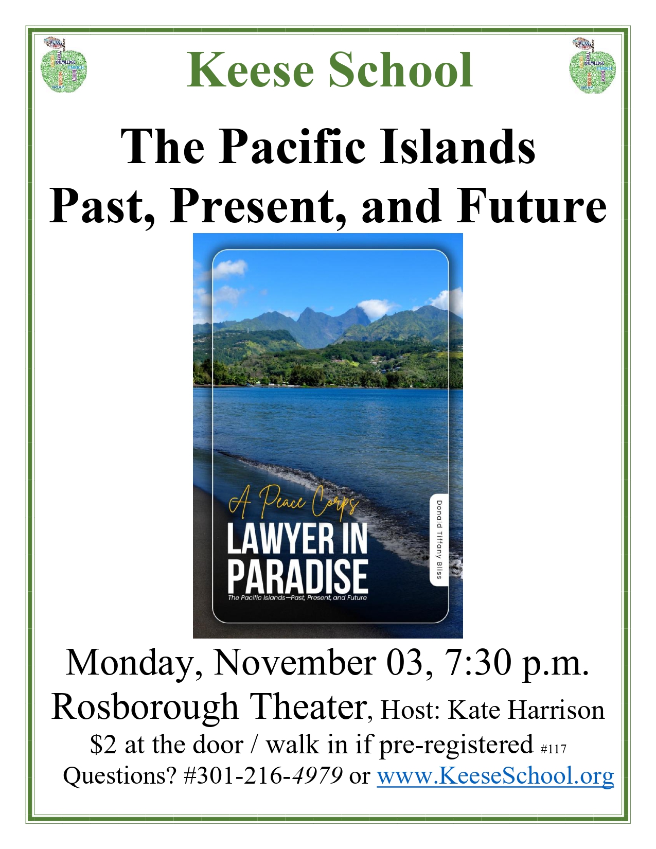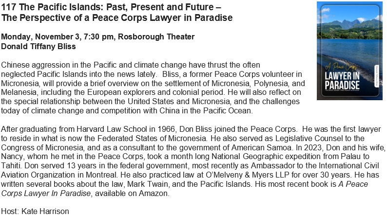 The Pacific Islands: Past, Present and Future , Donald Tiffany Bliss, Rosborough Theater,
