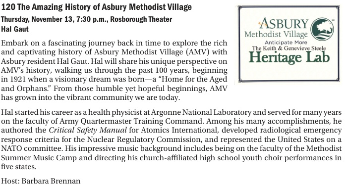 The Amazing History of Asbury Methodist Village , Hal Gaut, Rosborough Theater,