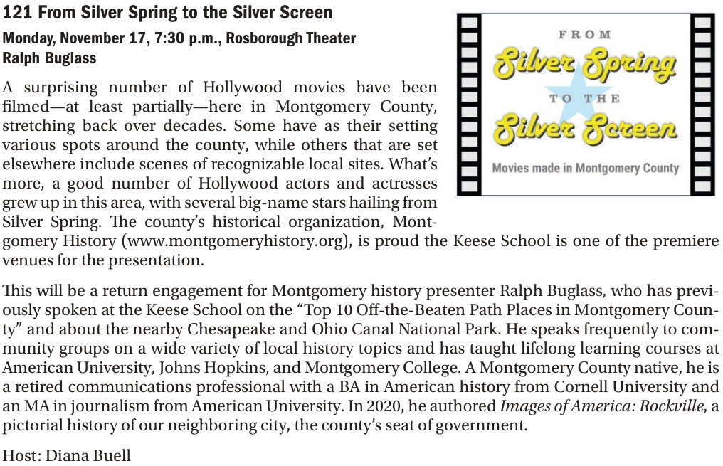 Silver Spring to the Silver Screen , Ralph Buglass, Rosborough Theater,