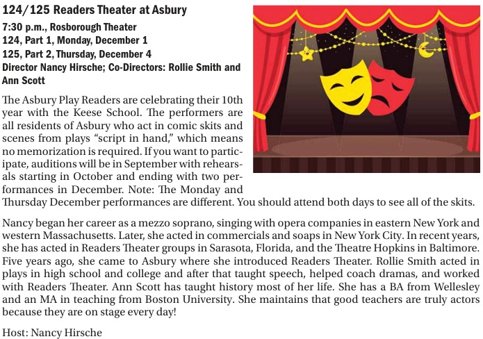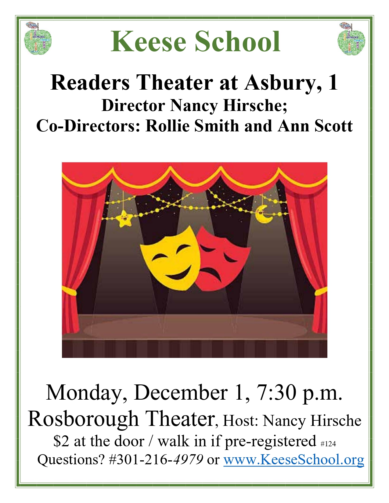 Readers Theater at Asbury, 2 , Director Nancy Hirsche; Co-Directors: Rollie Smith and Ann Scott, Rosborough Theater,